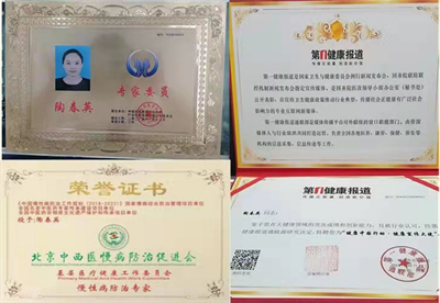 2021年参加中医传承非遗技师培训。2021年受邀于中国中医药教育协会中医药产业创新发展促进工作委员会担任专家委员 任期三年。2021年第一健康报道特聘为健康中国行动“健康宣传大使”2022年2月受邀于中国民族卫生协会健康养生分会,担任专家委员,任期两年。